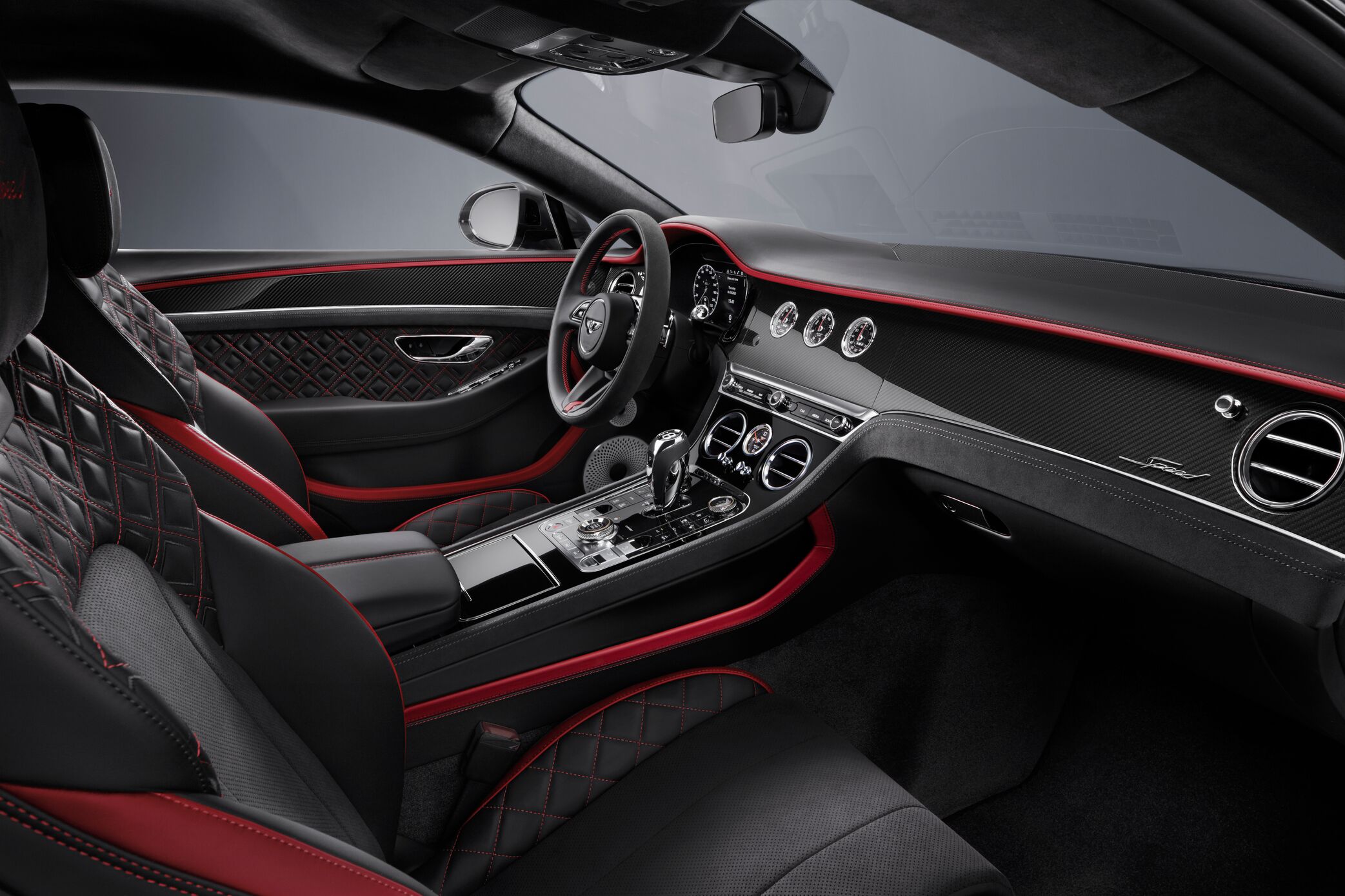 Inside, the Continental GT Speed has a dramatic design theme, with the use of Alcantara materials and a unique Speed color split combining to complete the contemporary design. Other exclusive details include embroidered Speed headrests, Speed badging, and, with the Mulliner Driving Specification as standard, extra touches such as diamond-in-diamond quilting providing luxury at every touch.